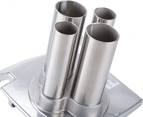 Предназначена для загрузки длинных и нежных продуктов: бананов, огурцов, кабачков, моркови и т.д. Каждая трубка оснащена встроенным толкателем. Изготовлена из высококачественной нержавеющей стали. 2 трубки диаметром 50 мм. 2 трубки диаметром 70 мм.