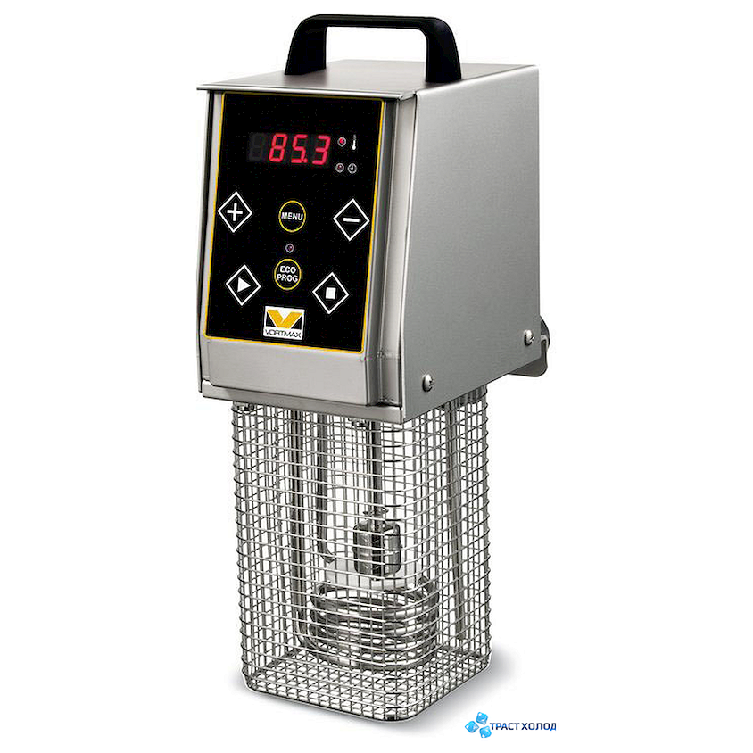 Погружной аппарат Sous Vide Vortmax VS One используется в кафе, ресторанах и других заведениях общепита для приготовления различных блюд при низких температурах с помощью технологии Sous Vide (в вакуумной упаковке). Данное оборудование имеет температурный режим от 20 до 100 °C, максимальную рабочую глубину 165 мм, максимальный рабочий объём до 50 л и электронную панель управления.