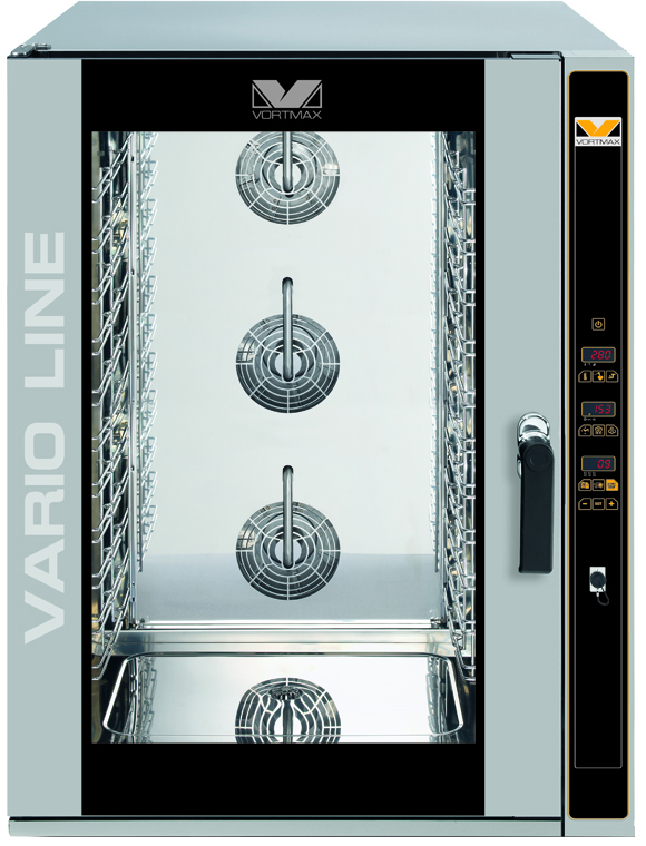 Электрический пароконвектомат Vortmax VSI 11 W применяется для тушения, варки или жарки продуктов и приготовления из них различных блюд в ресторанах, столовых и других заведениях общепита. Это оборудование имеет вместимость 11 гастроёмкостей GN 1/1 или 11 противней 600х400 мм, температуру нагрева до 260 °С, расстояние между уровнями 75 мм и электронное управление.