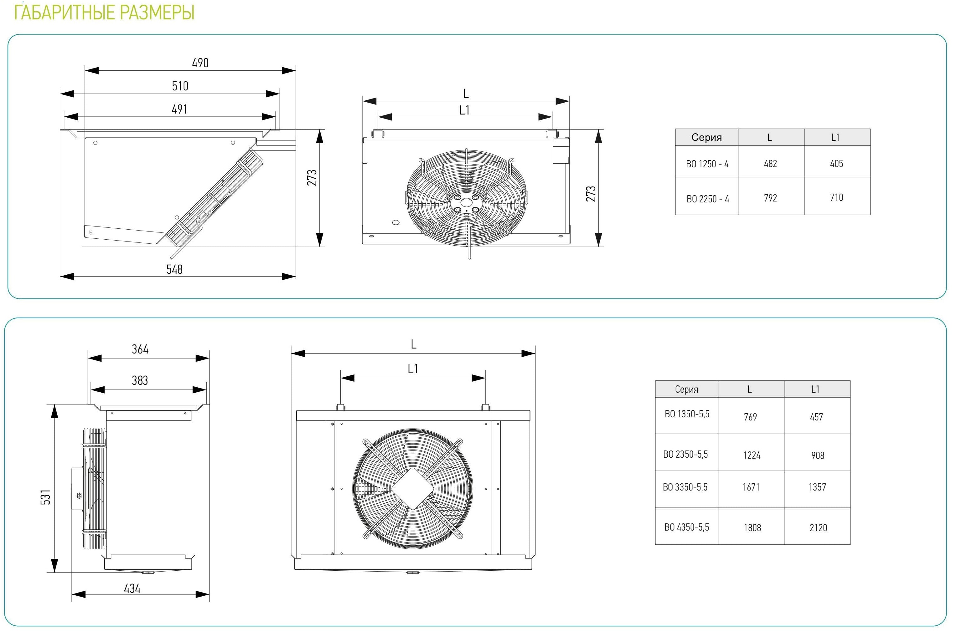 • Вентиляторы оборудованы однофазными четырехполюсными электродвигателями (подключение к сети