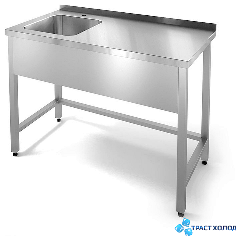Ванна моечная односекционная с рабочей поверхностью, конструкция сварная. Ванна цельнотянутая, располагается СЛЕВА, выполнена из нержавеющей стали марки AISI 304, столешница толщиной 1,2 мм выполнена из стали AISI430. Внутренние размеры ванны – 500х500х300 мм. Каркас представляет собой трубу 40х40, выполненную из стали  AISI430 . На ваннах имеется отверстие под смеситель. В комплект поставки не входит сливной сифон и смеситель. Все ванны имеют стандартную высоту 870 мм.