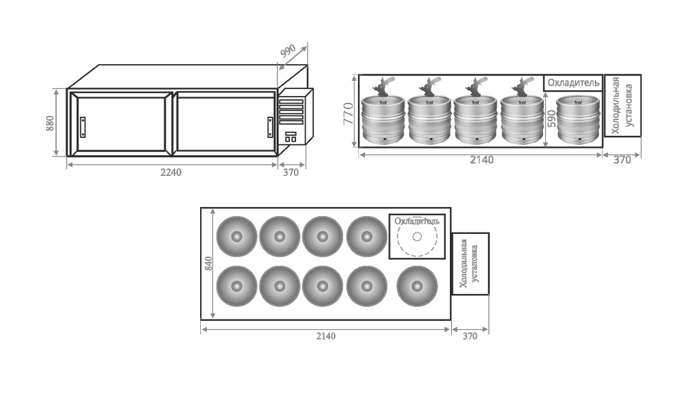 Вместимость камеры: 10 евро кег с одетыми заборными головками. Расположение кег в один ряд. Данная встраиваемая холодильная камера, по сути, представляет из себя барный кегератор BERK с уменьшенными габаритами по высоте без столешницы. Располагается эта камера под барной стойкой занимая объем пространства, в котором ранее помещался проточный охладитель и кеги.