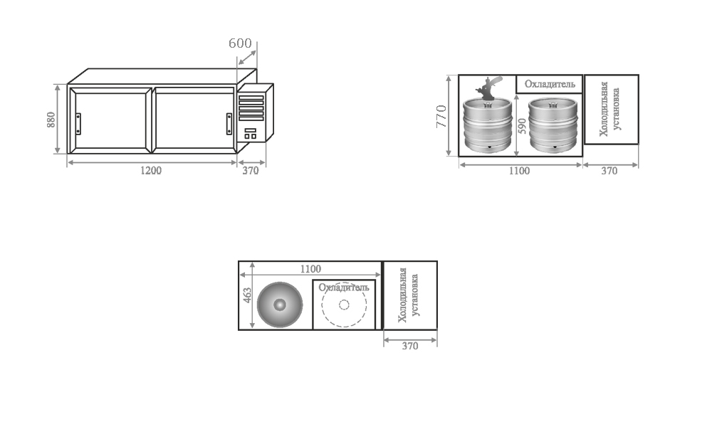 Вместимость камеры: 2 евро кега с одетыми заборными головками. Расположение кег в один ряд. Данная встраиваемая холодильная камера, по сути, представляет из себя барный кегератор BERK с уменьшенными габаритами по высоте без столешницы. Располагается эта камера под барной стойкой занимая объем пространства, в котором ранее помещался проточный охладитель и кеги.