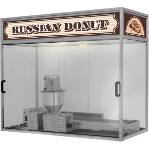 Бокс защитный настольный для аппарата пончикового СИКОМ А-11 с яркой подсветкой, подключение к вентиляции через блок рекуператора В-3.725, предназначен для автономного пончикового производства на ограниченом пространстве. В верхней части бокса имеется рекламный фриз. Основное назначение бокса – изоляция помещения от резких запахов, выделяемых продуктами в процессе обжаривания в масле. Защитный бокс необходим в случае, если пончиковое оборудование размещается для демонстрации процесса приготовления пончиков: на улице, в специальных отделах супермаркетов, торговых центров и на фуд-кортах. Стенки бокса ограничивают свободный доступ посетителей заведения к составным частям аппарата, одновременно обеспечивая великолепный обзор. С помощью бокса можно уберечь продукты от попадания пыли и насекомых в тесто или фритюрную ванну. Для обеспечения полноценной работы требуется всего один оператор.