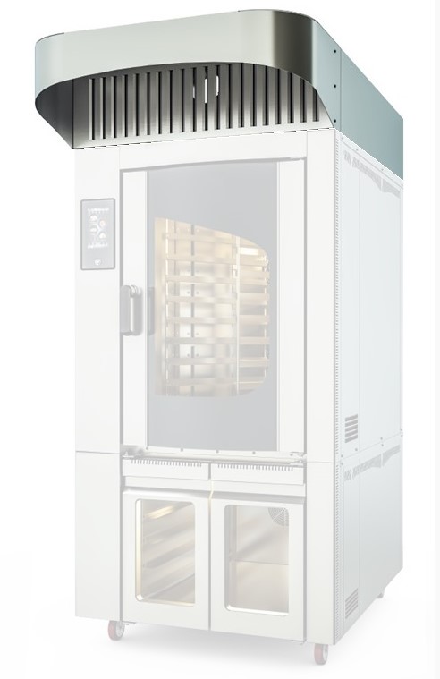 Вытяжной зонт Kocateq FRH mini используется совместно с ротационной печью FR mini 10 EN (40x60) на предприятиях общественного питания и торговли, в пекарнях и кондитерских для очистки воздуха от пара, гари и жира.