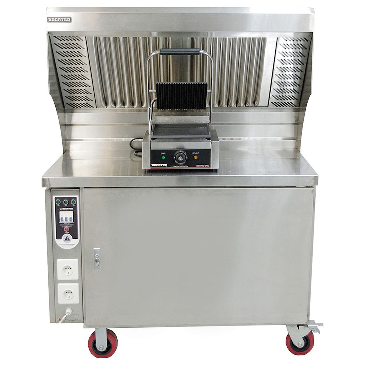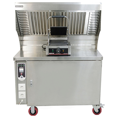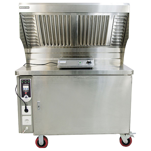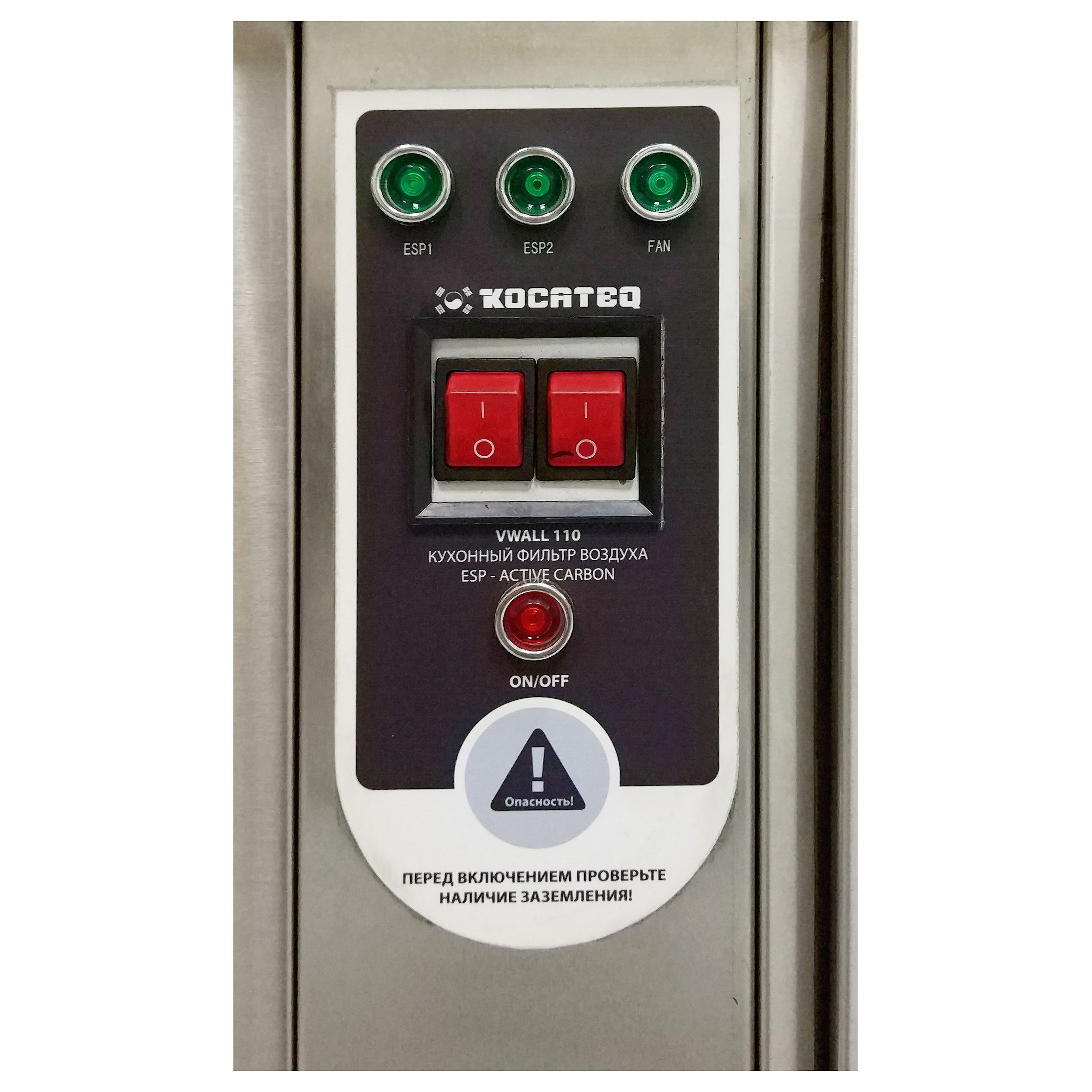Вытяжной зонт Kocateq VWALL 110 предназначена для очистки воздуха от жира, масла, дыма и водяного пара на кухне на предприятиях общественного питания и торговли. Мощный вентилятор всасывает воздух из зоны готовки и после многостадийной очистки выбрасывает его под стенд. Очистка воздуха обеспечивается последовательно установленными лабиринтными фильтрами из нержавеющей стали, фильтром с активированным углем и электростатическим фильтром. Корпус выполнен из нержавеющей стали AISI201.