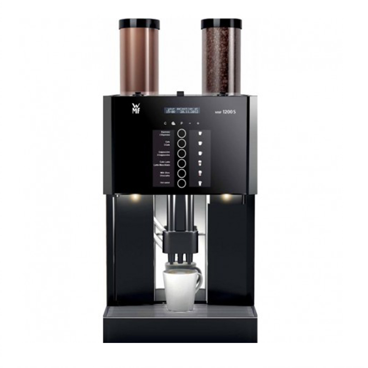 WMF 1200 S -  это профессиональная автоматическая кофемашина с базовой комлектацией 03.1200.0300 ( Basic Milk, 1 кофемолка, контейнер для шоколада, автокапучинатор, резервуар для воды, Basic Clean) которая используется для приготовления различных кофейных напитков в барах, офисах, конференц-залах, салонах красоты.
