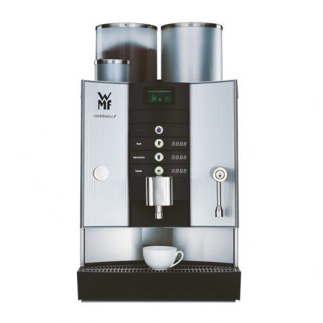 Профессиональная кофемашина с высокой производительностью CombiNation F от компании WMF с базовой комплектацией 03.8700.0685 (1 бункер для молотого кофе, 1 встроенный резервуар для кофе с объемом 4 литра, автодозатор для автоматической очистки с помощью гранулята, регулируемая по высоте передняя панель, горячая вода) применяется в офисах, барах, ресторанах, отелях и на АЗС для приготовления изысканного кофе эспрессо, американо, капучино.
