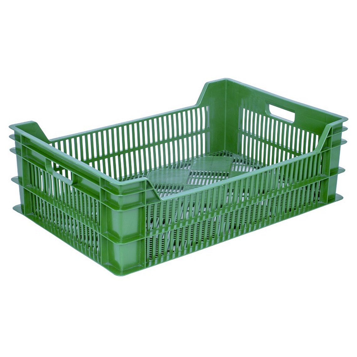 Перфорированные дно и стенки сохраняют продукцию свежей долгое время. Ящики штабелируются в сеты без риска повредить содержимое ящика нижнего уровня. Прочная конструкция и высокое качество.