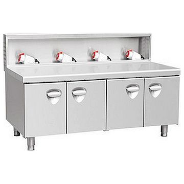 Закрытый стенд Kocateq 4B14 для установки двух функциональных элементов кухонной линии 400. С фронтальной стороны стенда возможно закрепить декоративную панель, что позволяет устанавливать в центре зала. В качестве конструкционных материалов используются: для рабочих поверхностей и поверхностей, соприкасающихся с пищей, нержавеющая сталь AISI 304 толщиной 1 мм; дно и задняя стенка изготовлены из нержавеющей стали AISI 201 толщиной 1 мм.