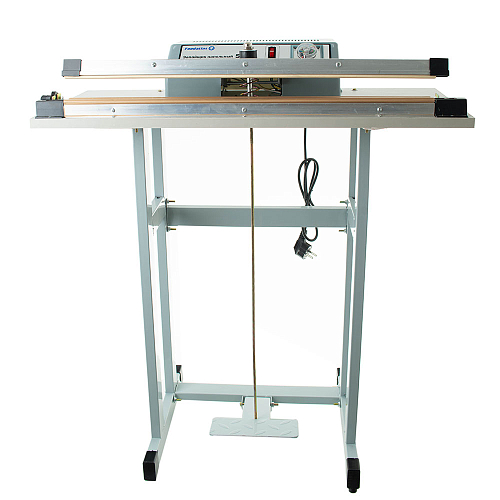 • Для запуска ножного привода упаковочного оборудования достаточно нажать педаль. Подача пакета для запайки осуществляется вручную. Модель не настроена на установку даты и маркировки на обрабатываемые пакеты. Ножной запайщик не оснащен функцией поступления воздуха или образования вакуума.