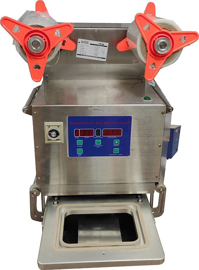 Запайщик пластиковой тары Hualian Machinery HL-95A (автомат) используется на производственных площадках, предприятиях пищевой промышленности, общественного питания и торговли для запечатывания пластиковых поддонов, лотков, контейнеров термосвариваемой пленкой с обрезкой по его контуру. Модель оснащена матрицей (187х137 мм), регулировкой времени и температуры и может работать в ручном, полуавтоматическом и автоматическом режиме. Корпус выполнен из нержавеющей стали.