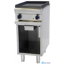 Предусмотренное количество рабочих поверхностей – 1. При этом поверхность прогревается полностью равномерно, что позволяет избегать пригорания блюд и гарантирует отличные вкусовые качества блюд. Равномерному обжариванию способствует и гладкая структура рабочей поверхности. Долговечность аппарата обеспечивает такой материал корпуса, как нержавеющая сталь. При этом материал рабочей поверхности - чугун.  Термостат позволяет регулировать t нагрева рабочей поверхности от 100 до 300°C. Жарочная поверхность имеет жиросборник для стекающей жидкости и снабжена по периметру бортиками для предотвращения разбрызгивания жира.