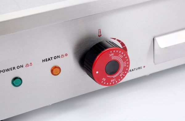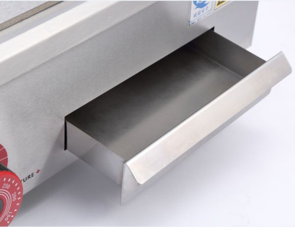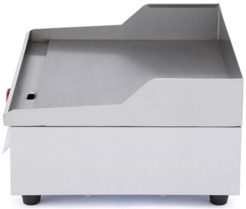 Электрическая модель оснащена механическим управлением, трехсторонними защитными бортиками от разбрызгивания, сплошной жарочной поверхностью.