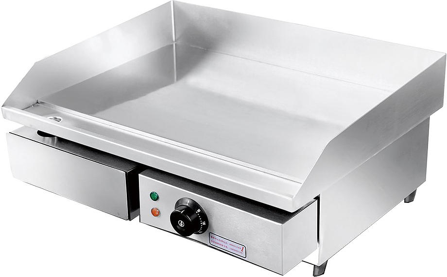 Равномерный нагрев поверхности обеспечивает качественную обработку продуктов. Модель оснащена терморегулятором, бортиками по периметру для предотвращения разбрызгивания жира и индикаторами нагревания и мощности.