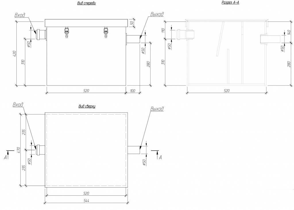Устройство имеет небольшие размеры и устанавливается под мойкой до попадания стока в трубопровод канализации.