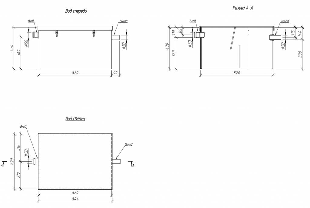 Устройство имеет небольшие размеры и устанавливается под мойкой до попадания стока в трубопровод канализации.