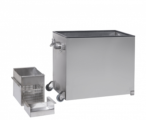 Производительность 1,5 м. куб./ч., пиковый сброс 75л. Крышка оснащена уплотнительной резинкой, гидрозатвором, а также предназначен для монтажа с разрывом струи. Съемный перфорированный лоток для сбора мелких отходов. Диаметр входного отверстия 80мм, выходного патрубка - 50мм. Подходит для установки под мойки габаритами от 400х700х850 с ваннами до 500х500х300. Материал сталь AISI 304.