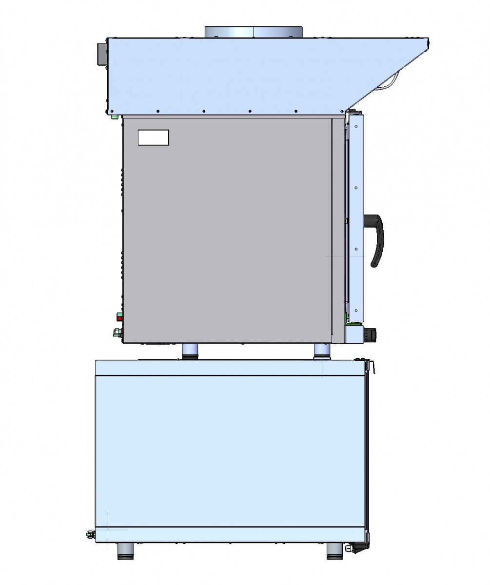 Зонт ЗВВ-6-6/4 устанавливают на конвекционную печь типа КЭП-6 и подсоединяют к конвекционной печи с помощью кабеля питаня (2 м, с заземлением). Зонт фиксируется с помощью винтов М5 к крыше конвекционной печи (предварительно нужно совместить трубки вывода пара с отверстиями в ванне зонта). Ванна зонта имеет сливную трубку с резьбой G 1/2", к которой необходимо присоединить шаровой кран для слива жидкости.