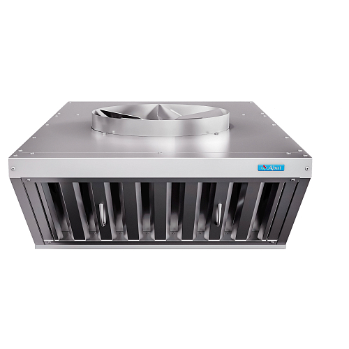 Разогретый воздух, насыщенный парами масла, жира и воды, всасывается осевым вентилятором в зонт, проходит сквозь фильтр и удаляется из помещения очищенным. При ударе о стенки фильтра, имеющего лабиринтную структуру, пары масла, жира и воды конденсируются из-за температурного перепада на фильтре и стекают в канал.