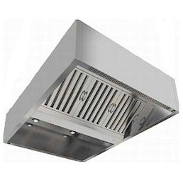 Коробчатый вытяжной зонт HICOLD ЗКВОО-08,514 оснащен жировыми фильтрами "лабиринт". Дополнительно можно установить блок приточной вентиляции и подсветку.