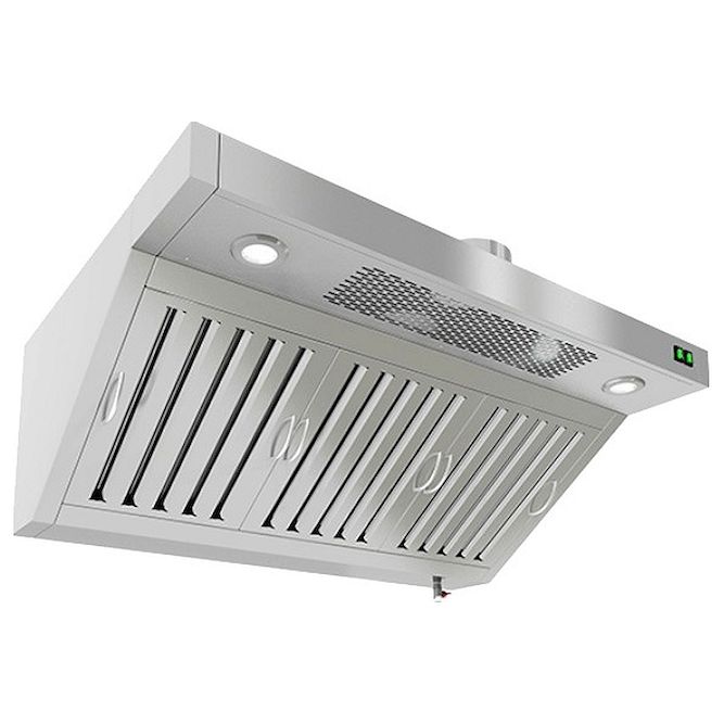 Зонт вытяжной HICOLD ЗВПОК-1210 оснащен жировыми фильтрами "лабиринт", козырьком и отверстием под вентилятор. Дополнительно можно установить блок приточной вентиляции и влагозащищенную подсветку.