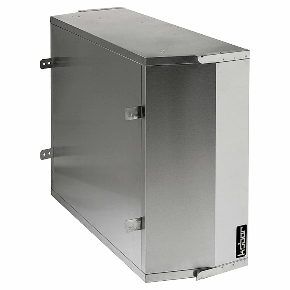 Зонт Кобор ЗЦВ-160/200 используется для очистки воздуха на кухне от жира, масла, дыма и водяного пара. Прибор подключается к вытяжной вентиляционной системе предприятия, где он установлен. Дополнительно зонт можно оснастить подсветкой. Зонт изготовлен из высококачественной нержавеющей стали, имеет два основных компонента: корпус и съемный лабиринтный фильтр, которые легко чистятся. В зонте присутствует сливной канал, по которому масло стекает в накопительные жиросборники. Зонт размещается над любым тепловыделяющем оборудованием.
