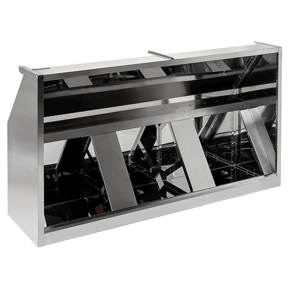 Зонт Кобор ЗПВ-100/100 используется для очистки воздуха на кухне от жира, масла, дыма и водяного пара. Прибор подключается к вытяжной вентиляционной системе предприятия, где он установлен. Дополнительно зонт можно оснастить подсветкой. Зонт изготовлен из высококачественной нержавеющей стали, имеет два основных компонента: корпуса и съемных лабиринтных фильтров, которые легко чистятся. В зонте присутствует сливной канал, по которому масло стекает в накопительные жиросборники. Зонт размещается над любым тепловыделяющем оборудованием. Прибор крепится на стену над оборудованием.