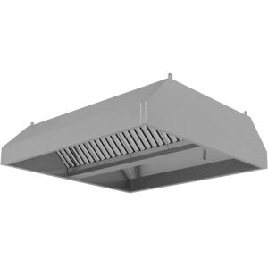 • Зонт вытяжной центральный трапецевидный, без отверстия, без подсветки, оснащён лабиринтными фильтрами и сливным краном.