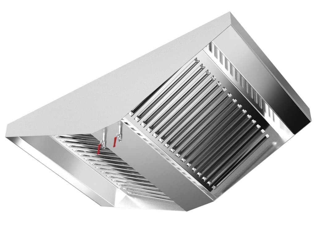 Корпус зонта представляет собой короб, изготовленный из листовой нержавеющей стали марки AISI 430 толщиной 0,8 мм. Зонт оборудован лабиринтным жироулавливающим фильтром из нержавеющей стали. Фильтры устанавливаются в корпус без использования крепёжных деталей.