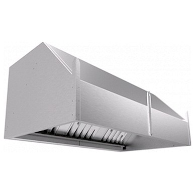 Зонт оснащен лекгосъёмными лабиринтными фильтрами-жироулавителями, сливными каналами со съемными жиросборниками. Зонт выполнен полностью из нержавеющей стали AISI 430 толщиной 0,7мм.