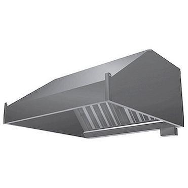Зонт вытяжной пристенный (кепкой) ТТМ ЗВПК-0708 без отверстия, без подсветки, с лабиринтным фильтром и съёмным жиросборником. Размер и количество секций фильтра зависит от габаритных размеров зонта. Все элементы зонта изготовлены из нержавеющей стали.